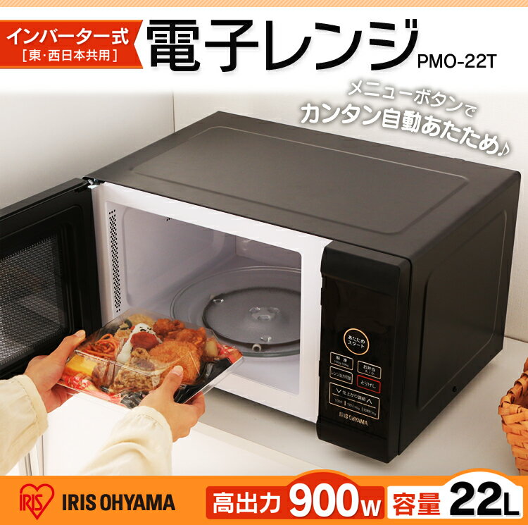 \100円OFFクーポン対象★/電子レンジ ターンテーブル 22L アイリスオーヤマ 一人暮らし 新生活 全国対応 インバーター レンジ 60Hz 50Hz 西日本 東日本 ヘルツフリー 解凍 単機能レンジ オフィス おしゃれ ブラック PMO-22T-B【送料無料】