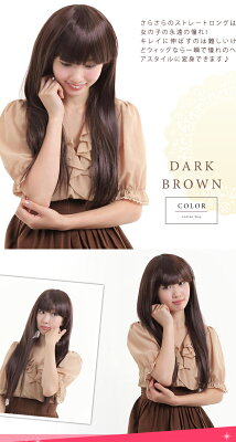 ウィッグ ロング フルウィッグ エクステ ウイッグ 耐熱 全3色 ハロウィン コスプレ かつら 長髪 ストレート 前髪ぱっつん 清純 カジュアル 黒髪 茶 ブラック ブラウン 仮装 コスチューム 学園祭 結婚式 パーティ