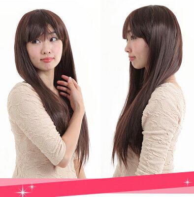 ウィッグ さら艶 ロング フルウィッグ エクステ ウイッグ 耐熱 全3色 ハロウィン コスプレ かつら 長髪 ストレート 前髪ぱっつん 清純 カジュアル 黒髪 茶 ブラック ブラウン 仮装 コスチューム 学園祭 結婚式 パーティキュート 可愛い