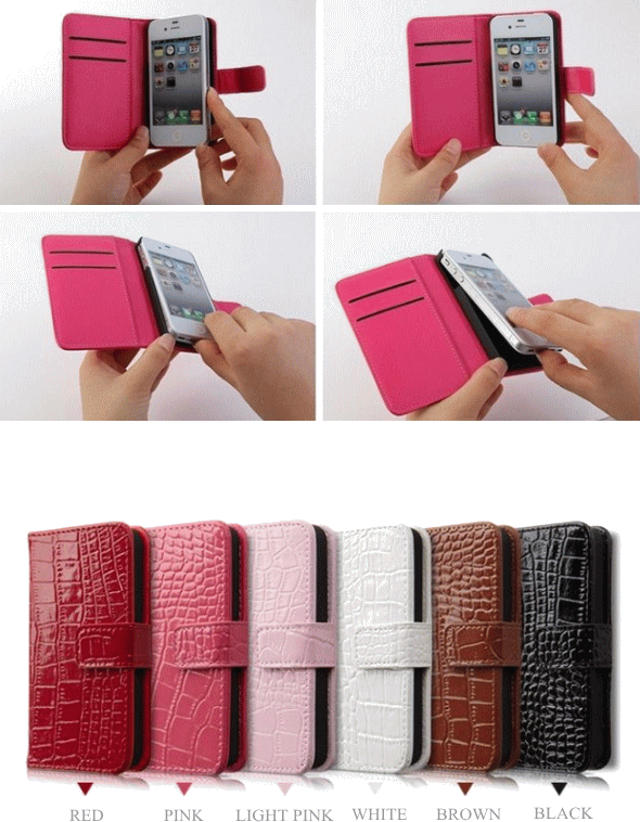 商品名 iPhone5 クロコダイル レザーウォレット カバーケース 通常納期 在庫限り即日発送 (欠品納期約1週間〜) カラー RED / PINK / LIGHT PINK / WHITE / BROWN / BLACK 素材 レザー 初期不良 初期不良交換期間は発送日より7日間限り。