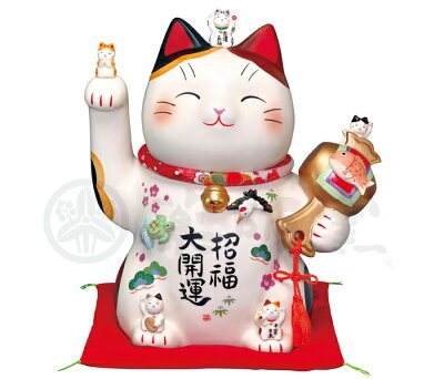 ■商品について 彩絵招福大開運招き猫・ちりめん首輪付(11.5号)貯金箱 およそ高さが35cmと存在感のある立派な招き猫です。