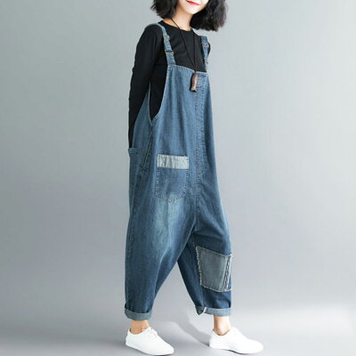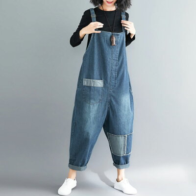 ルーズなシルエットが◎デニムオールインワン デニムサロペット レディース サロペット パンツ デニム サルエルパンツ オールインワン 大きめ ゆったり 可愛い 春 夏 秋